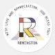 Asombroso monograma artístico divertido. Aquí está la letra "R". Estilo neoplasticismo, o De Stijl, decoración artística de línea y color, el pájaro gracioso se sienta en la carta. El campo de arte se encuentra bajo la letra. El nombre de la plantilla "REMINGTON" se encuentra debajo de la imagen. "Con amor y aprecio. ¡Que Dios te bendiga!" El texto gira alrededor de la imagen. Puede cambiar o eliminar todos los textos y puede cambiar la imagen. Único pegatina único para usted. Puede transferir este diseño a varios productos. No dude en usar el botón "Editar diseño" o "Personalizar" (como puede ser el funda) del color azul para cambiar el tipo de letra, color o posición de la imagen y el texto de la plantilla. Sé creativo, personalizar, cómprate uno y sé feliz!
