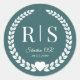 Pegatina Redonda Monograma Verde azulado de bosque de tierra simple