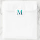 Pegatina Redonda Monograma Verde azulado de gradiente azul turquesa