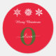 Pegatina Redonda Monograma verde blanco rojo guión Feliz Navidad