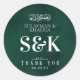 Monograma verde esmeralda real Boda islámica Favor de Pegatinas redondos clásicos Un dulce agradecimiento por su presencia en nuestro boda, tiene un elegante fondo verde esmeralda. Tiene un mensaje especial en árabe, "wa khalaqnakum azwaja" (que significa "Y te creamos en pares"), y nuestros nombres y monogramas se pueden colocar con estilo en tipografía audaz. Agregamos "Con amor" y "Gracias" porque realmente apreciamos que estés ahí. También se incluye sutilmente la fecha de nuestro boda. Estos pegatinas son perfectos para añadir un toque de elegancia a los favores matrimoniales como sobres o regalos.