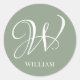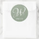 Pegatina Redonda Monograma verde de sabio personalizado inicial