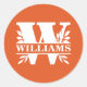 Una letra en negrita hojas florales se divide el monograma W con el apellido en el estilo de tipo de letra de coordinación. Monograma W para pegatinas a favor en su boda de otoño o aniversario. Personalizar los colores para crear tu propio pegatina de monograma personalizado. Vea la categoría Monogramas por carta para obtener más opciones.