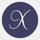 Pegatina Redonda Monograma X, blanco sobre azul marino,