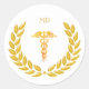 Pegatina Redonda Monograma y Médica de Oro Caduceus