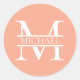 Pegatina Redonda Monograma y nombre elegante y personalizado
