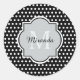 Pegatina Redonda Monograma y nombre negrita de puntos de polka blan