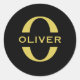 Pegatina Redonda Monograma Y Nombre Negro Y Oro Personalizados