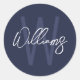 Pegatina Redonda Monograma y nombre personalizados del guión azul d