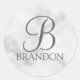 Pegatina Redonda Monograma y nombre personalizados en guión en márm
