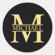 Pegatina Redonda Monograma y nombre personalizados en negro y oro