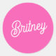 Pegatina Redonda Monograma y nombre personalizados modernos de rosa