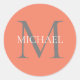 Pegatina Redonda Monograma y nombre personalizados rosa claro