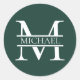 Pegatina Redonda Monograma y nombre verde esmeralda elegante y pers
