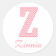 Pegatina Redonda Monograma Z de la letra Rosa preppy