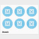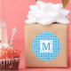 Pegatina Redonda Monogramado de puntos grandes blancos azules moder