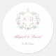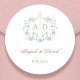 Pegatina Redonda Monogramas de boda religiosos con marco floral