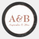 Pegatina Redonda Monogramas de cobre y fecha sobre mármol negro