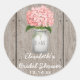Pegatina Redonda Monogrammed Mason Jar Pink Hydrangea Bridal Shower
