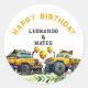 Pegatina Redonda Monster Camión Selva Safari Feliz cumpleaños