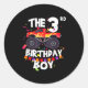 Pegatina Redonda Monster Truck 3rd Birthday Boy Funny 3 Years Old B
