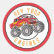 Pegatina Redonda Monster Truck Rev Your Engines Birthday Party
