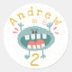 Pegatina Redonda Monstruo Verde azulado personalizable