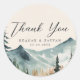 Pegatina Redonda Montañas acuarelas y Bodas De Pines Gracias