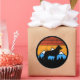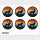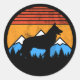 Pegatina Redonda Montañas Sunset y Bosque Pastor Alemán GSD
