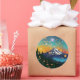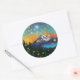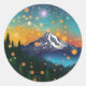 Pegatina Redonda Monte Rainier w Evening Starry Sky y luciérnagas