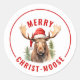Pegatina Redonda Moose, Navidades divertidos y divertidos de Feliz