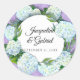 Pegatina Redonda Morado Floral Blanco Hidrangea Leaf Damasco Boda