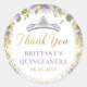 Pegatina Redonda Morado Floral Sparkle Gold Quinceanera Gracias