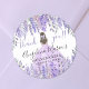 Añade un toque caprichoso y elegante a tus favores de tu fiesta, velas, ajustes de lugar, cierres de sobres y más con este encantador diseño pegatina redondo! Con un tema de jardín de lilas y lavanda, presenta delicados tallos de lavanda de color acuático en diversos tonos de violeta, emparejados con hojas verdes suaves. En el centro inferior, un chica con un vestido de púrpura brillante le da un toque regal y delicioso. "Gracias" está bellamente escrito en letras de escritura morada, creando un hermoso equilibrio de elegancia y simplicidad. Perfecto para las celebraciones de Quinceañera, este versátil pegatina también se puede personalizar cambiando los colores del tipo de letra o el fondo para adaptarse a su estilo.
