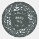 Pegatina Redonda Moras blancas de invierno con flores en verde terc
