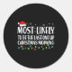 Pegatina Redonda Most Likely To Wake Up First Christmas Morning