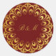 Estas hermosas y elegantes pegatinas presentan un motivo redondo dorado antiguo con texto central personalizable. Perfectas para uso en bodas y eventos especiales, incluyendo invitaciones y pegatinas para bolsas/cajas de favores. Mostradas sobre fondo rojo oscuro (que se puede cambiar al color de su elección)
