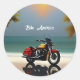 Pegatina Redonda Motocicleta Estacionada cerca del Océano