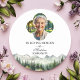 Pegatina Redonda Mountains and Trees Celebration Of Life Funeral