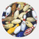 Pegatina Redonda Muchos PIns de Bowling antiguos
