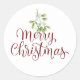 Pegatina Redonda Muérdago de Feliz Navidad en elegante escritura
