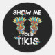 Pegatina Redonda Muéstrame tu pecho tikis gracioso Hawai Aloha Haw