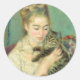Pegatina Redonda Mujer con un gato de Auguste Renoir