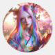Pegatina Redonda Mujer etérea mística bonito con mariposas