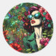 Pegatina Redonda Mujer hermosa en el jardín de flores