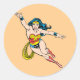 Pegatina Redonda Mujer Maravilla Volando Hacia Adelante