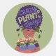 Pegatina Redonda Mujer Negra Crazy Plant Lady, Abrazando plantas