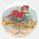 Pegatina Redonda Mujer Victoriana Feliz con Champán Rojo