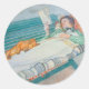 Mujer relajada en un banco al aire libre con su dachshund durmiendo en su regazo. Acuarela sueca vintage de Carl Larsson.