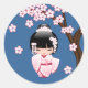Pegatina Redonda Muñeca Kokeshi kimono blanca - Chica Geisha lindo